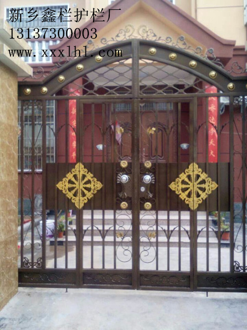 4.新鄉(xiāng)鑫欄護(hù)欄--鐵藝門,鑫欄護(hù)欄專業(yè)生產(chǎn)鐵藝門、歐式門。色彩多樣,美觀時(shí)尚,以下圖片是原陽的別墅大門。采用靜電噴塑技術(shù),耐腐蝕,耐銹達(dá)十幾年,選護(hù)欄就選鑫欄護(hù)欄。